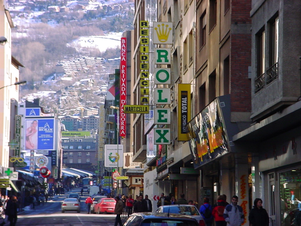 Tax-free shopping is one of the main draws of Andorra, especially for Spanish and French residents who live nearby. Andorra la Vella is in large part an outdoor shopping mall, with the best deals to be found on alcohol, electronics and cigarettes. There is also a plethora of sports and outdoors shops to keep your wallet from getting too heavy. This shot is looking along Avenida Meritxell.