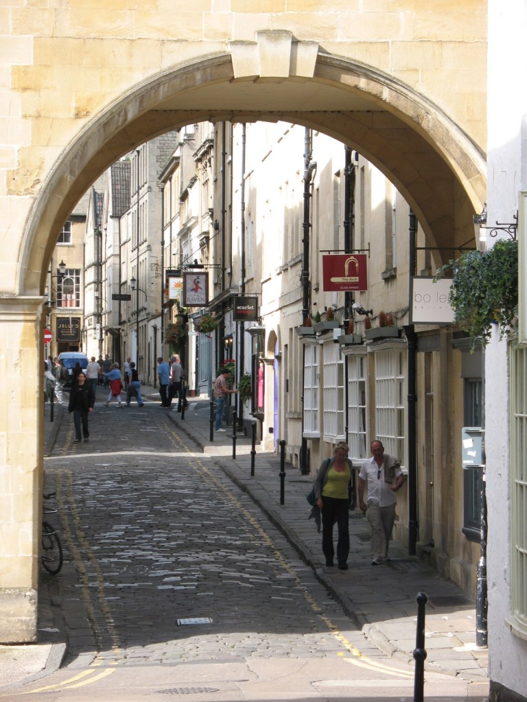 A quaint lane in Bath, this is the view looking up Queen Street.