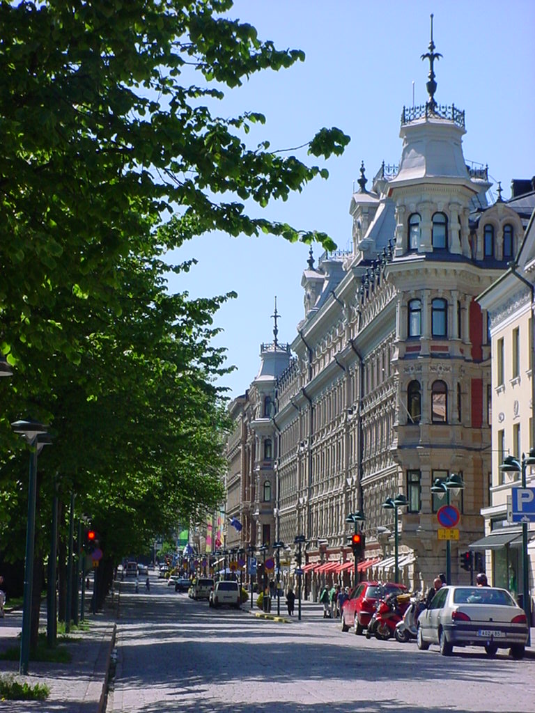 Espa Park is bounded by the wide boulevard of Pohjoisesplanadi to the north, which runs down to the market and the harbour.