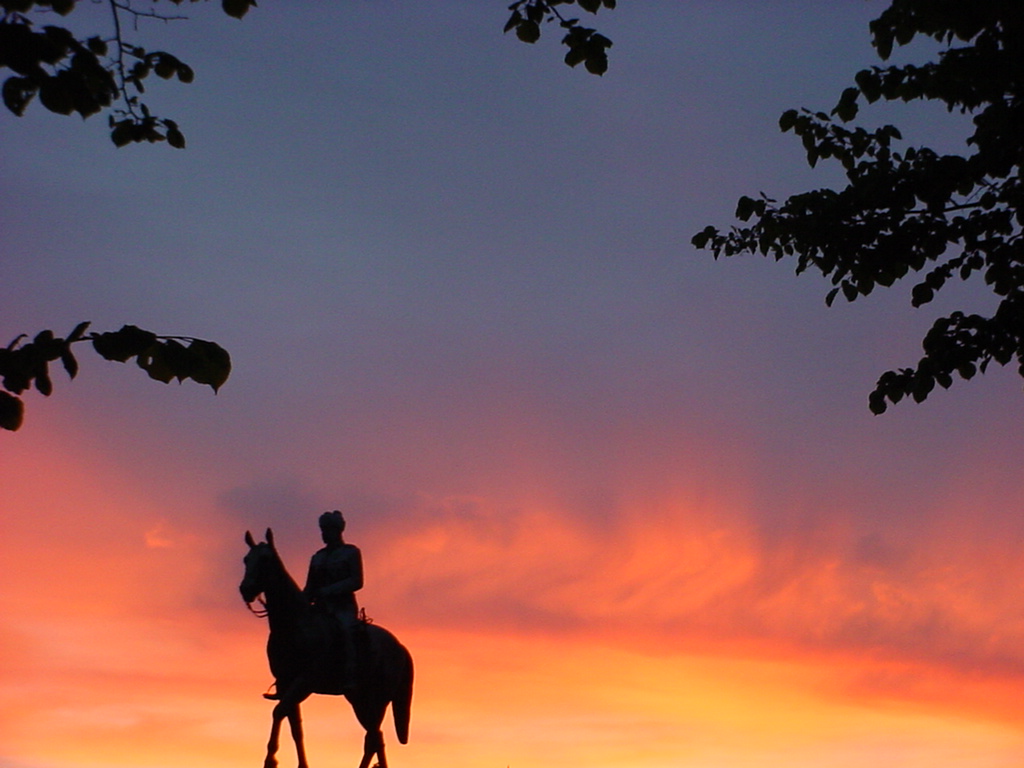 I was surprised, to say the least, when I spotted a lone ranger riding into the sunset, until I realised that it was in fact an equestrian statue. I was very pleased with the result of this photo, taken at Mannerheim Square. The statue is of Mannerheim himself, national hero and past president of Finland.