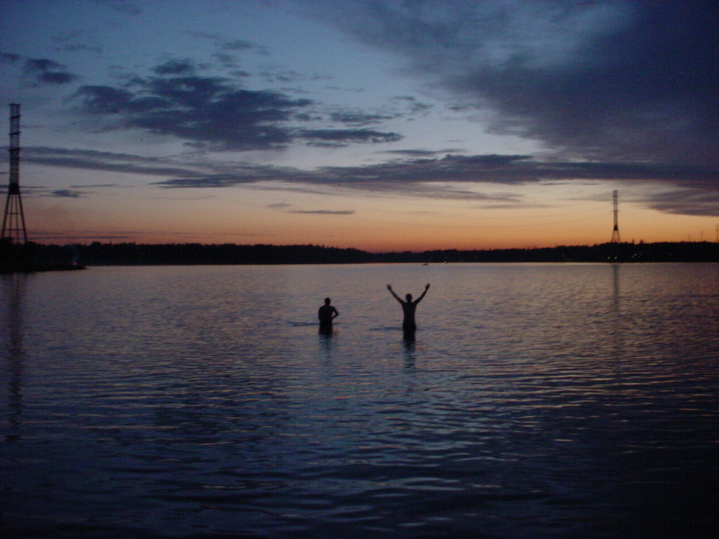 During the summer solstice festival the Finns tend to go into the country with family for barbecues and a short holiday, but there were a lot of people down at Hietaranta beach at the end of Hietaniemenkatu. All around the coastline and on the islands we could see the glowing bonfires and pillars of rising smoke as people celebrated. Then we jumped into the Baltic Sea. Here we are standing in the Baltic at about quarter past midnight on the 26th of June, our last night in Finland, and what a way to end it!