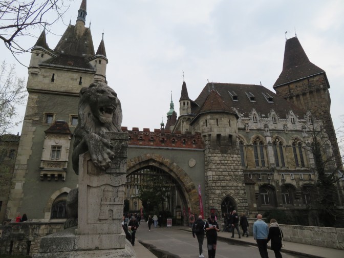 Vajdahunyad Castle presides over the City Park to the north, with this impressive lion guarding the entrance bridge over the moat, which at the time of our visit was dry. The castle is not especially old, having been completed in 1908, and features a range of architectural styles. It was built to celebrate the first thousand years of Hungary.