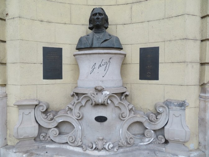 One of Hungary’s most famous sons, Franz Liszt, is commemorated in bust form on a corner of Zrinyi utca. His works are famous the world over, and fiendishly difficult to play on piano, as I can attest having tried some myself with little success.
