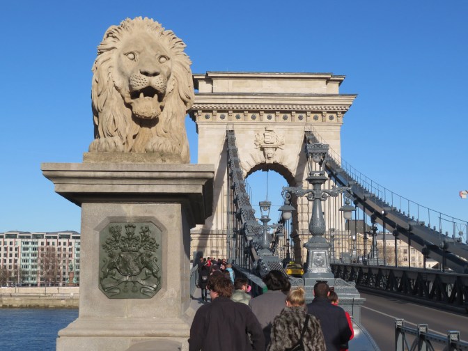 Buda Castle District is accessed from Pest by Chain Bridge, another of the city’s most famous sights and seen here looking back towards Pest. It was completed in 1849 by a Scotsman, the first river crossing in Budapest and one of the world’s longest bridges at the time. Unfortunately it had to be almost completely rebuilt following the war, during which the road deck and chains were blown up by the fleeing Germans.