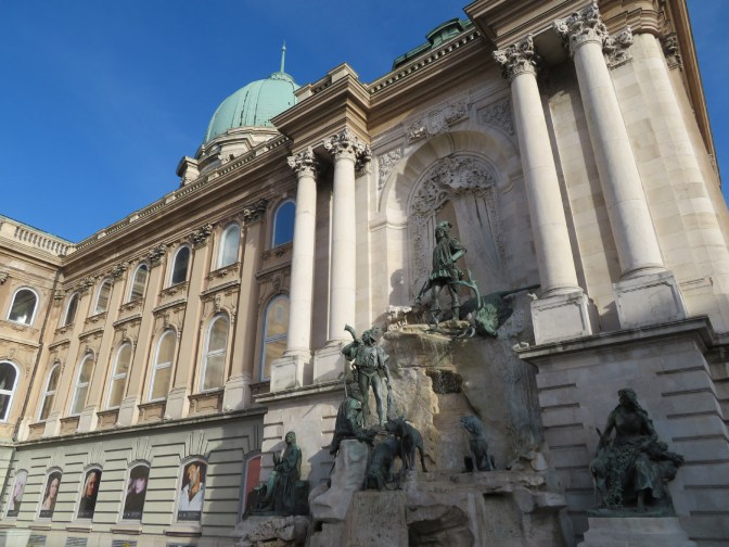 Buda Castle sits high on Castle Hill conveniently across the Danube from our hotel room, an excellent view that I was very pleased to have forked out the extra for. It was the residence of the Hungarian kings since 1265 but now hosts a series of museums and galleries following its rebuilding after the war, although much of the classical styling was lost.