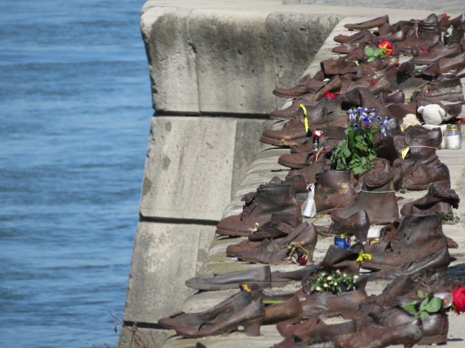 Shoes on the Danube Bank memorialises the thousands of people, many of whom were Jewish, who were forced to remove their shoes before being shot and falling into the water during the late stages of the Second World War. It is just south of the Parliament building.