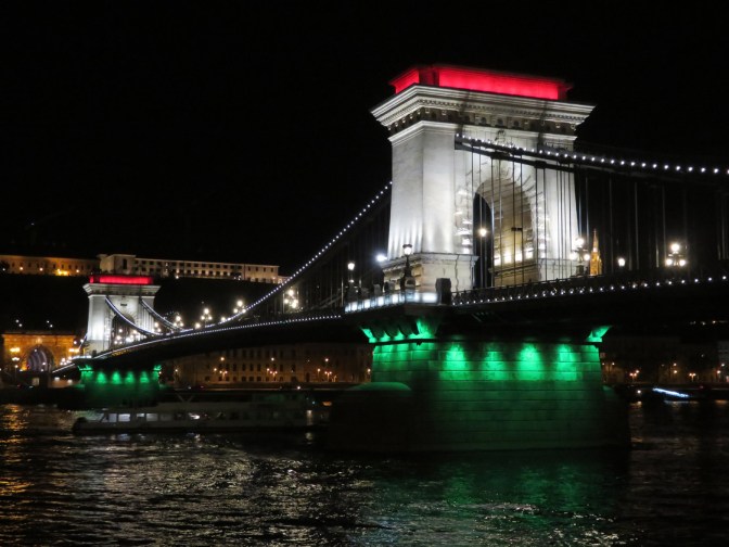 A final view of Chain Bridge as we wandered back to our hotel, lit up in the national colours. We also enjoyed the view from the nearby Marriott rooftop bar, although my photos from that vantage point were not as good.