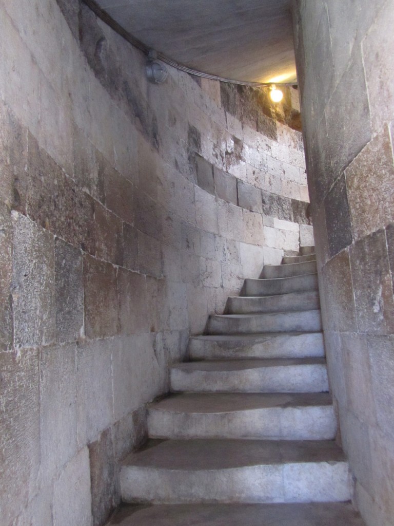 Stairs to the top run between the inner and outer cylinders which make up the tower’s walls. It was a bit of a climb, but not too busy, owing to the €18 charge to get in the door! But I wasn’t going to come this far and not climb it. You can see where the steps are more worn to the outside of the curve, following centuries of plodding.