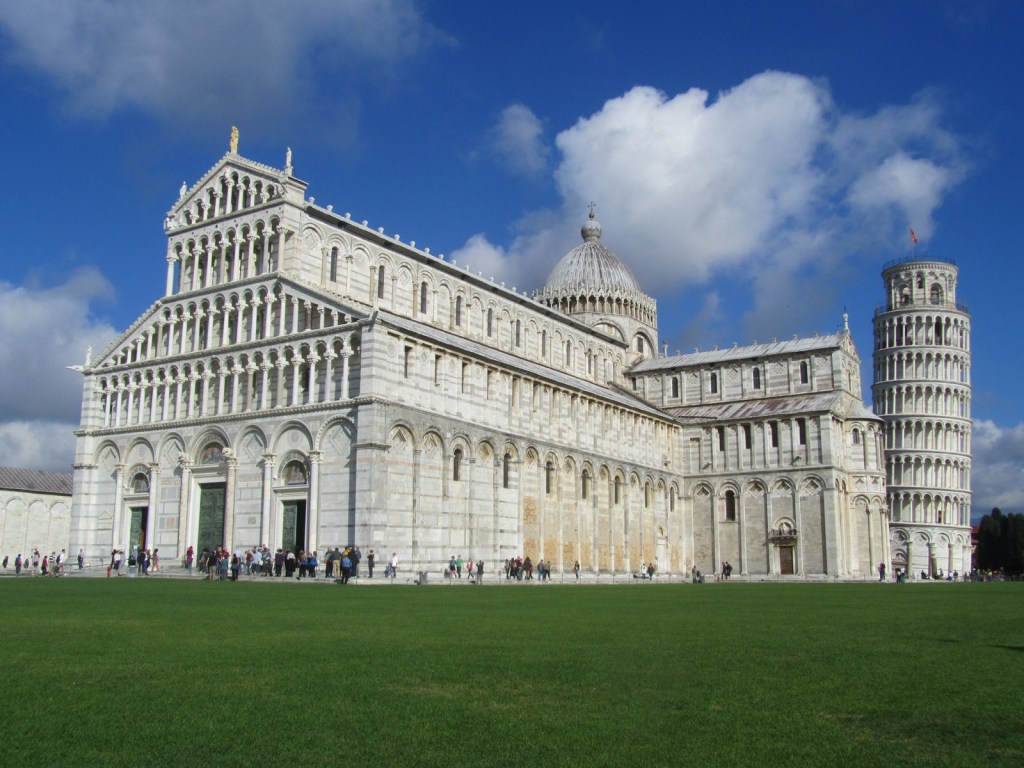 Piazza del Duomo is the religious centre of Pisa, with the Pisa Baptistry, the Pisa Cathedral (Duomo) and the Leaning Tower, which is in fact the bell tower for the cathedral. It is also known as the Piazza dei Miracoli, the “Square of Miracles”.