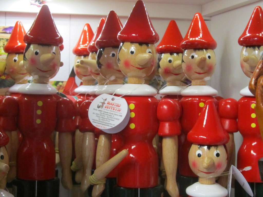 Pinocchio, Italy’s most famous son, is represented in his native form in a Pisa gift shop. Although the story of the wooden puppet who wanted to be a real, live boy was written in Florence, his likeness seemed to be much more widespread in Pisa.