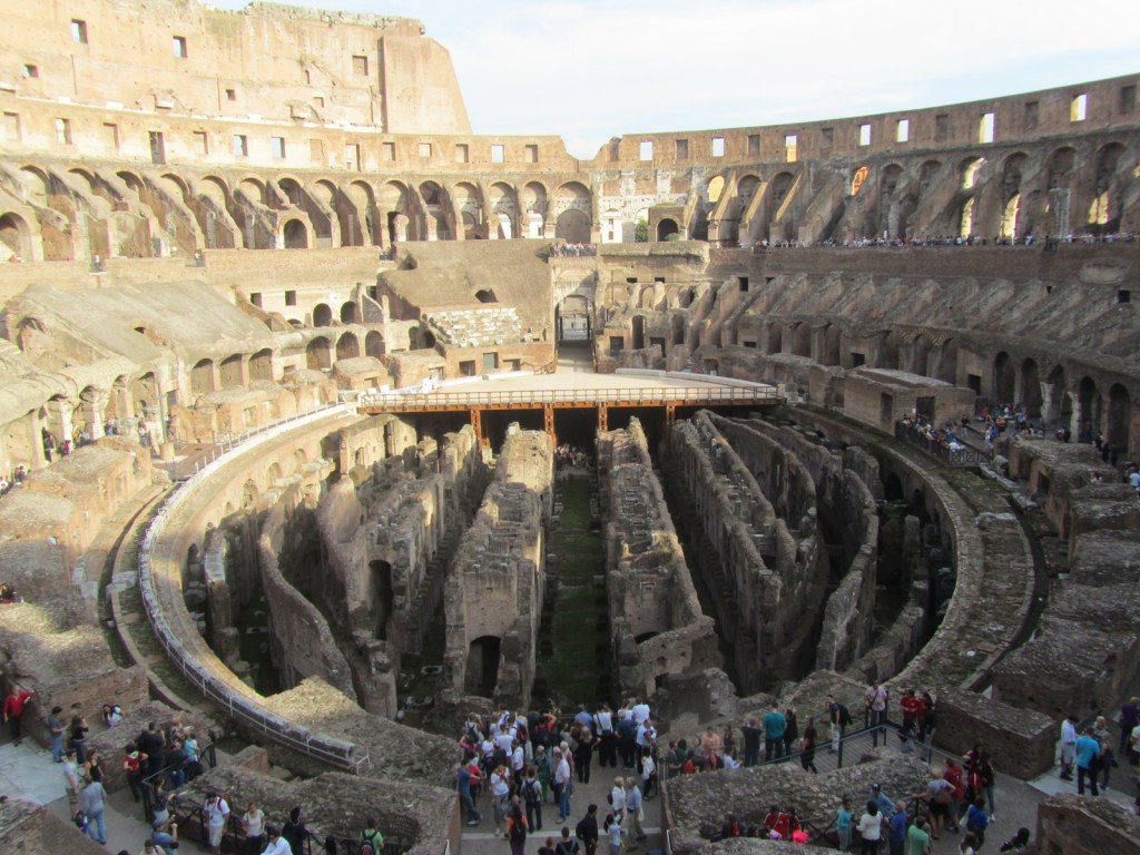 The interior of the Colosseum no longer has its floor or any original seats, having all been pinched by Michelangelo for use in the construction of St Peter’s Basilica. The floor of the stadium was wood covered in sand, and could be removed to allow the amphitheatre to be filled with water to re-enact naval battles. According to our tour guide, it’s estimated that up to two million people met their maker within these walls.