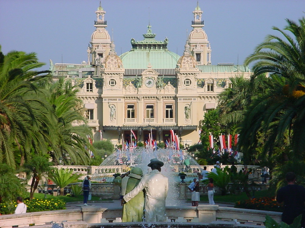 The Monte Carlo Casino as seen from the gardens which extend north, full of statues of people in classy 1920s style clothes, just like the people you see here. It opened in 1865 and is majority owned by the Grimaldi family, but citizens of Monaco are banned from entering the gaming halls, only foreigners may do so.