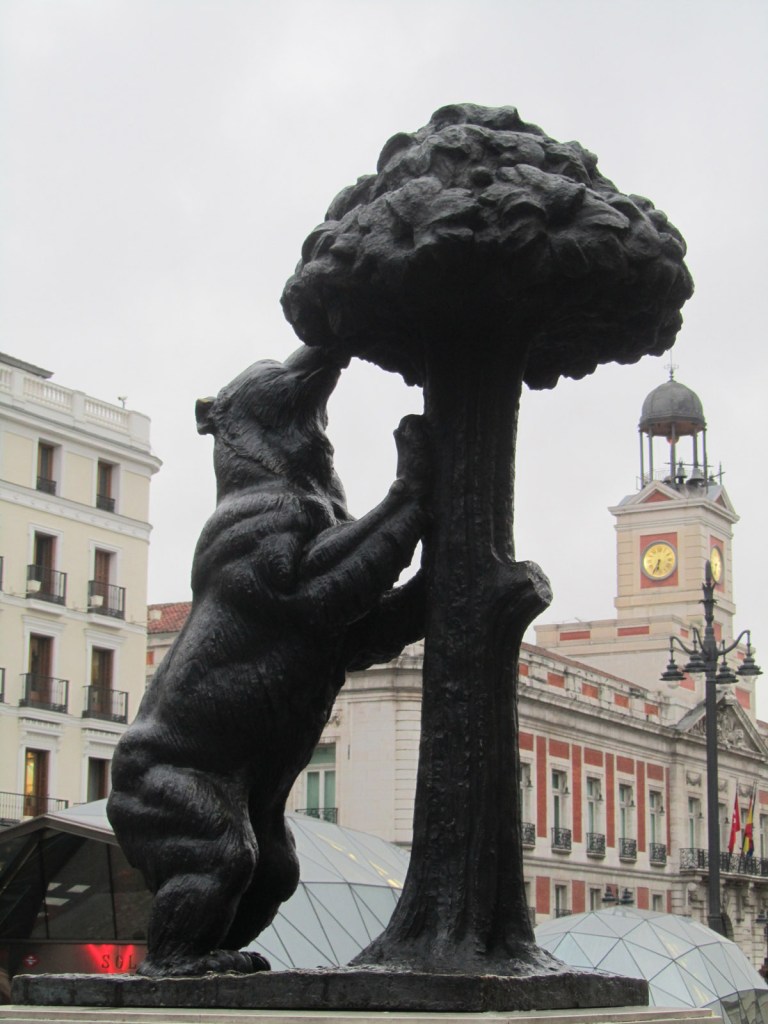 This is perhaps the most famous icon of Madrid, the statue El Oso y El Madroño, the bear eating fruit from a tree. It is the emblem of the city, from a time when bears were plentiful nearby. He stands at the east end of the Puerta del Sol, the de facto commercial centre of Madrid.