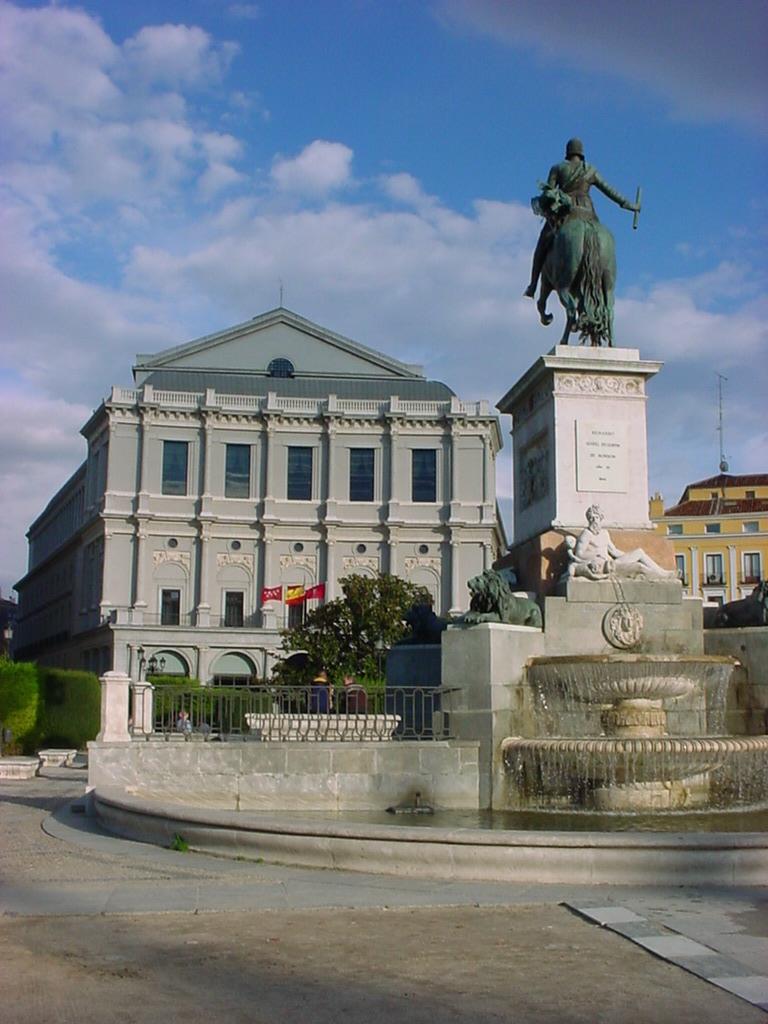 The Opera House, right across the way from the Royal Palace, with the equestrian statue of Philip IV. The statue was cast from a design by Velázquez and is said to be one of the finest pieces of sculpture in Madrid, although I personally preferred the statues of Don Quixote and company in Plaza España.
