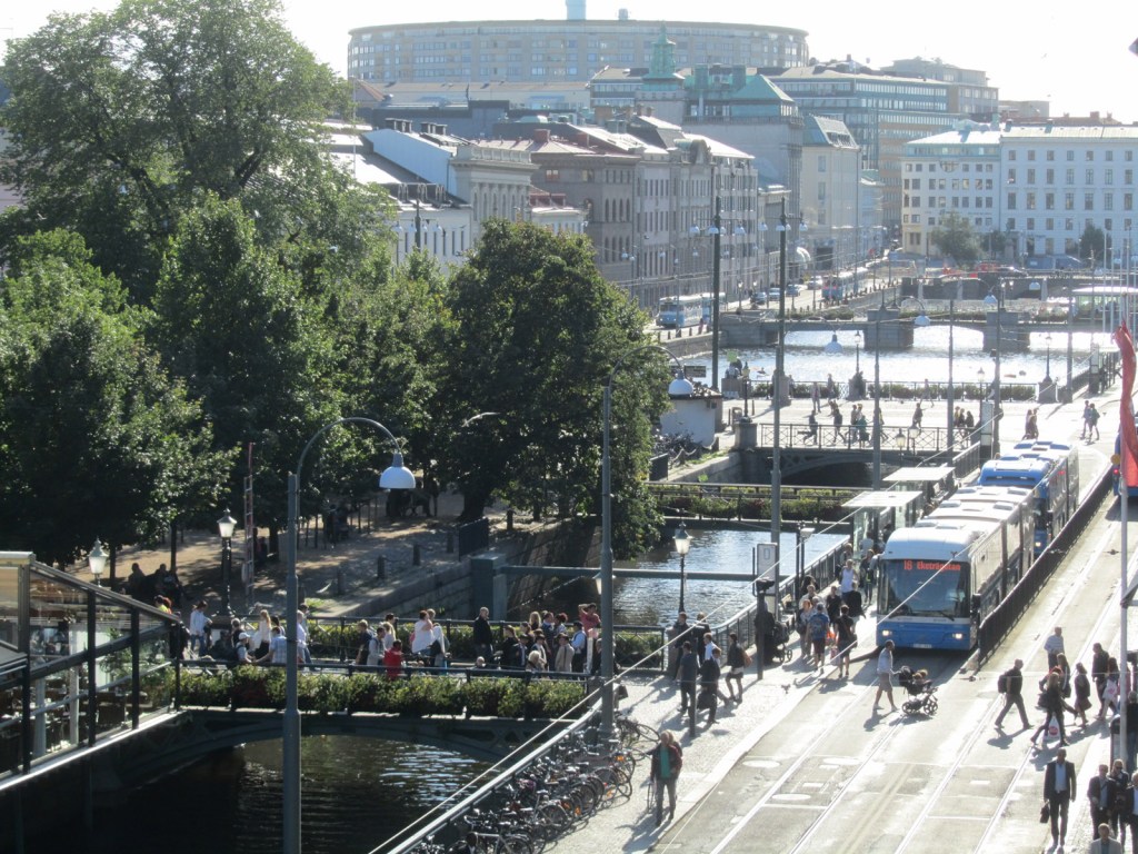 The view from our hotel room of a sunny afternoon in Gothenburg, looking along the canal that encircles the city centre.
