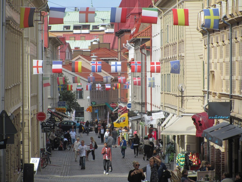 The most picturesque part of old Gothenburg is Haga, with its wooden houses and bijou shops. This is looking down Nygata, through the centre of Haga.