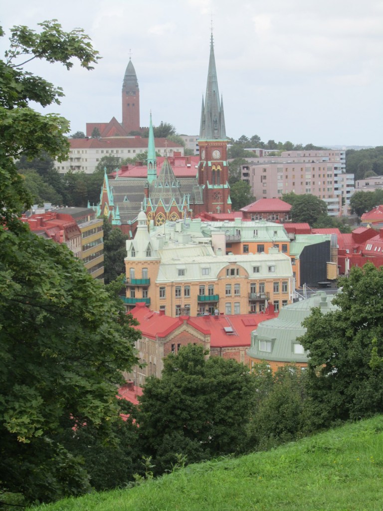 A view of Gothenburg from Skansen Kronan, with Oscar Fredrik’s Church and Masthugget Church in the far distance.