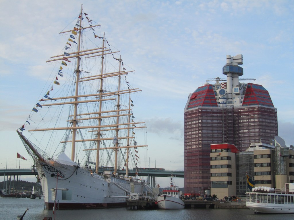Barken Viking was the largest sailing ship to be built in Scandinavia, and first took to the seas in 1906. She is seen here with Lilla Bommen, otherwise known as “The Lipstick” building in the background. We sat by the harbour and had a beer as the sun went down.