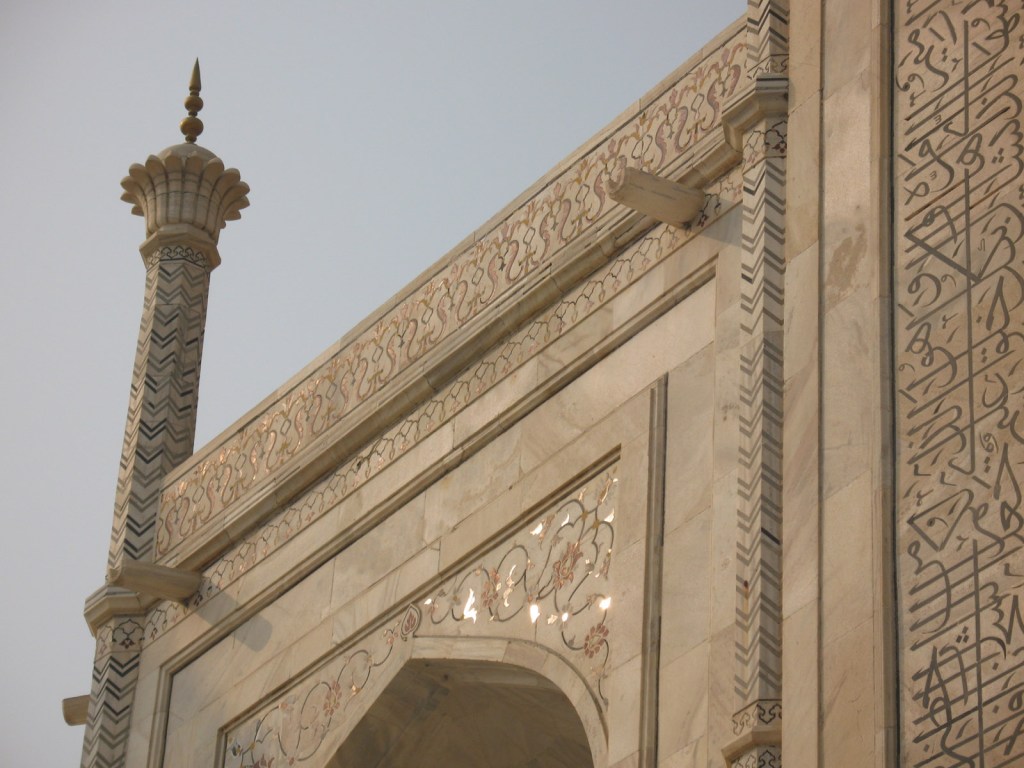 I was surprised by how big the Taj Mahal is, as can be seen in this photo of one of the vaulted recesses. The tip of the dome stands 73 metres above the surrounding gardens.