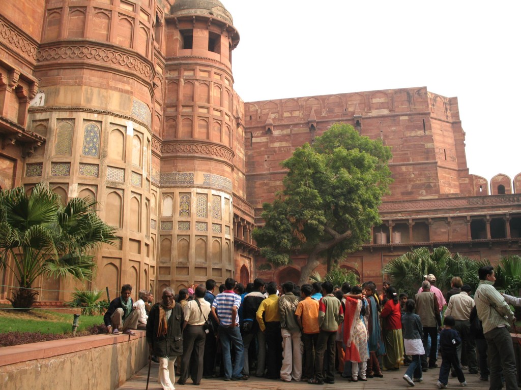 We headed back out into Agra city to the next major attraction, Agra Fort. Entry was by Amar Singh Gate as seen here crowded out by tourists. The fort was founded in the early 16th century and served as the seat of the Mughal Empire for various periods over the next two centuries.