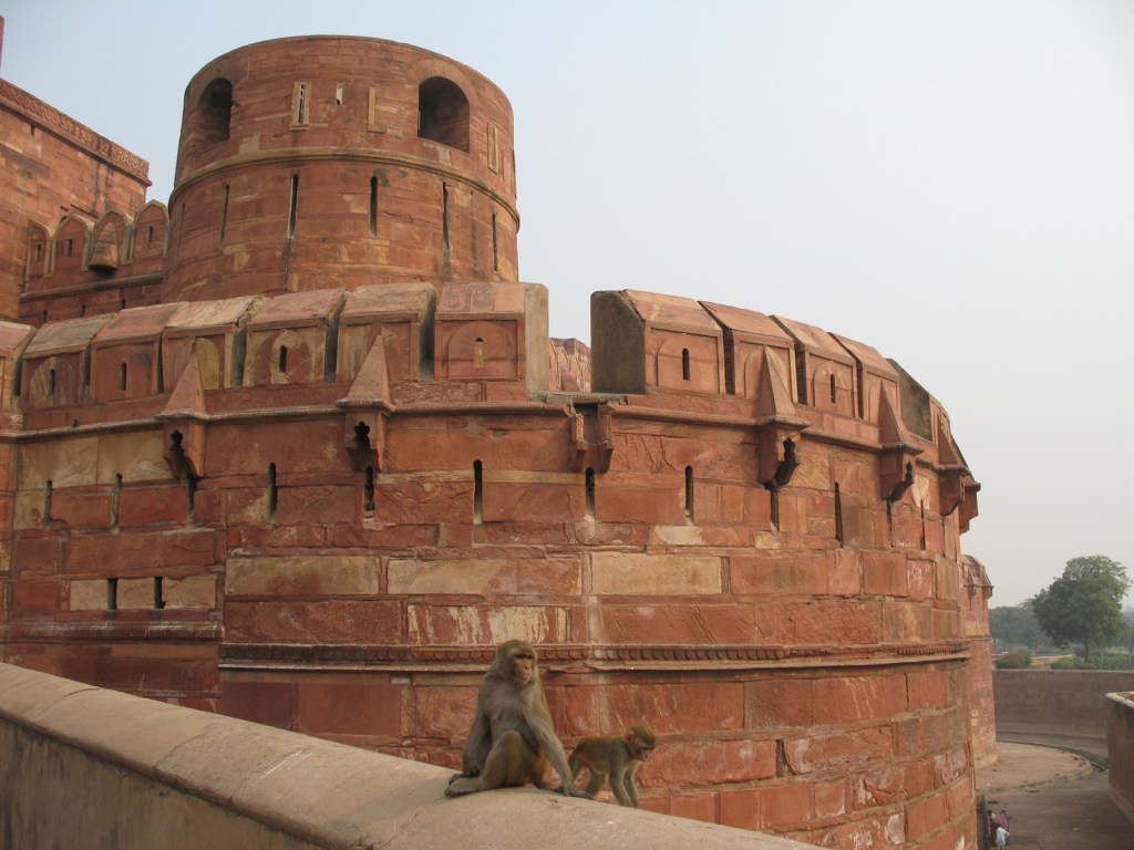 Local resident monkeys scampered around the walls of Agra Fort. They are not to be tangled with.