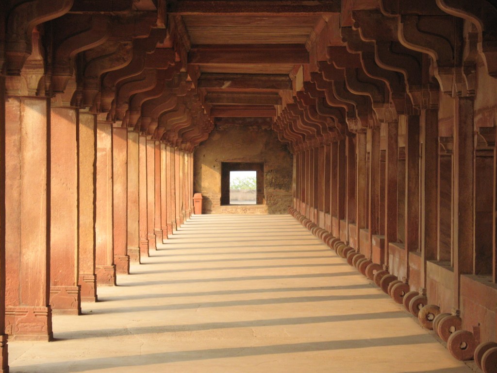 A long corridor of Akbar’s Stables, elsewhere within Fatehpur Sikri. The stone rings were presumably for tying up horses. It is often described as a ghost city, as it was only occupied for around fifteen years before being abandoned, ostensibly due to water shortages.