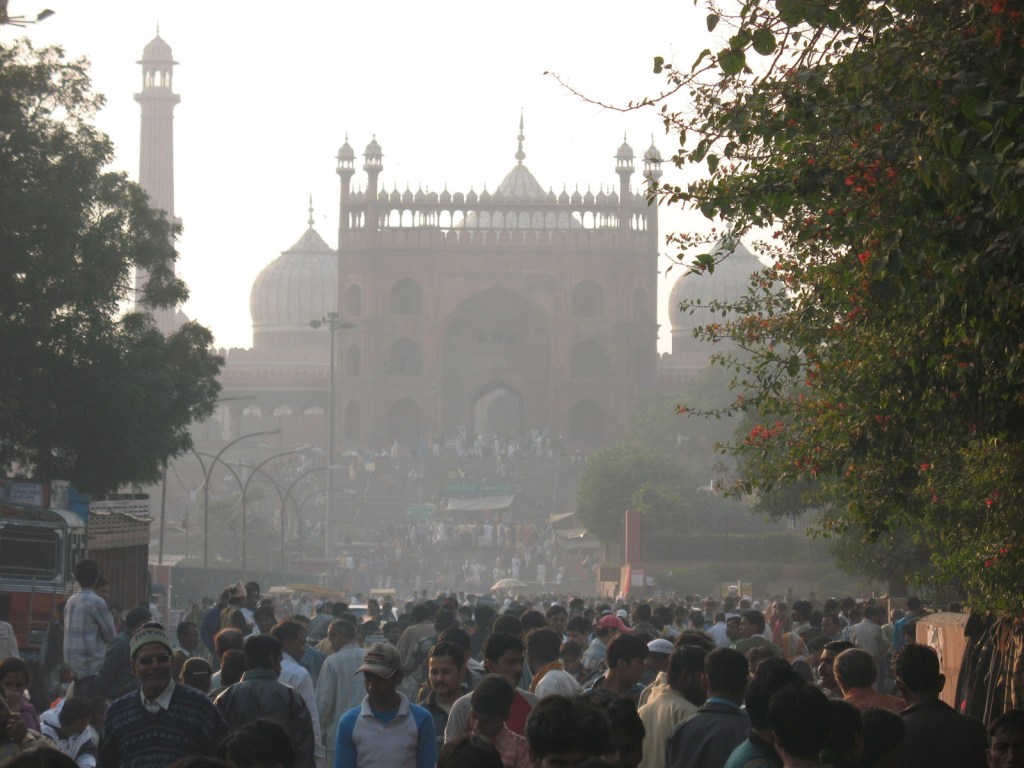 Looking back towards Jama Masjid from the opposite direction, through the evening haze and sea of humanity.