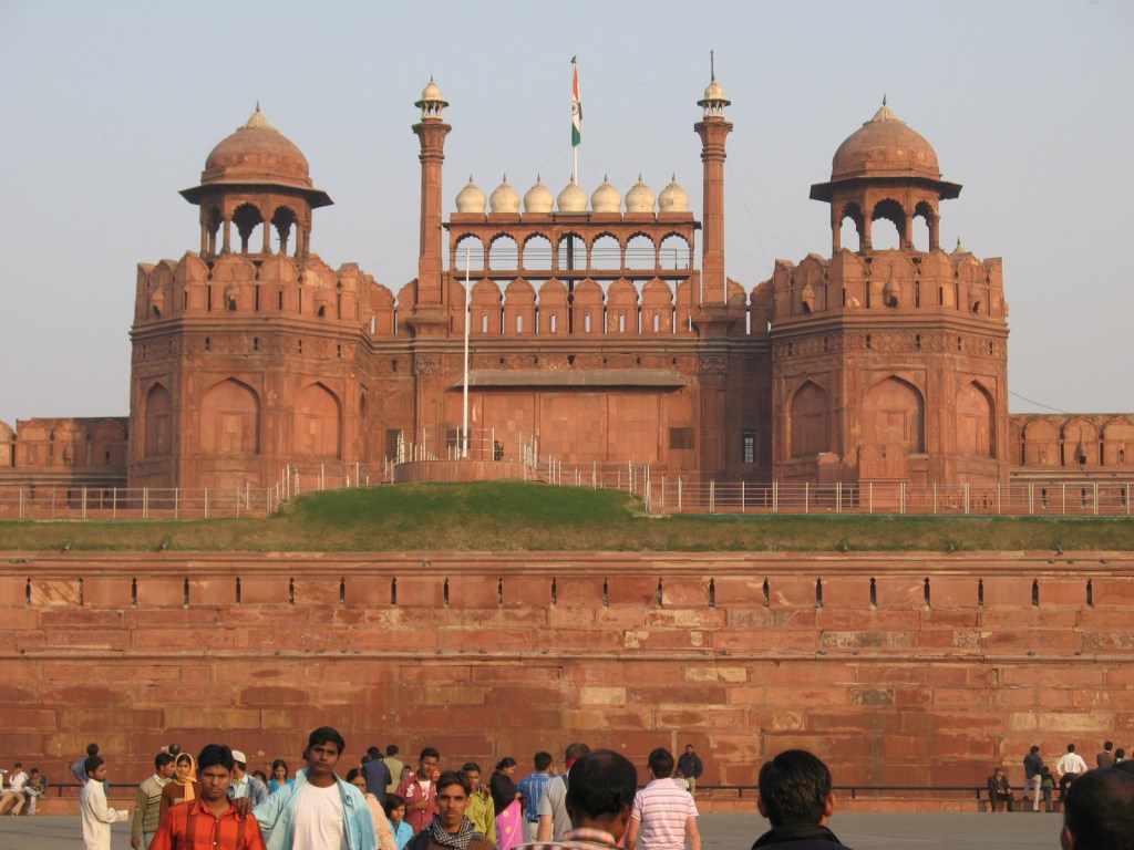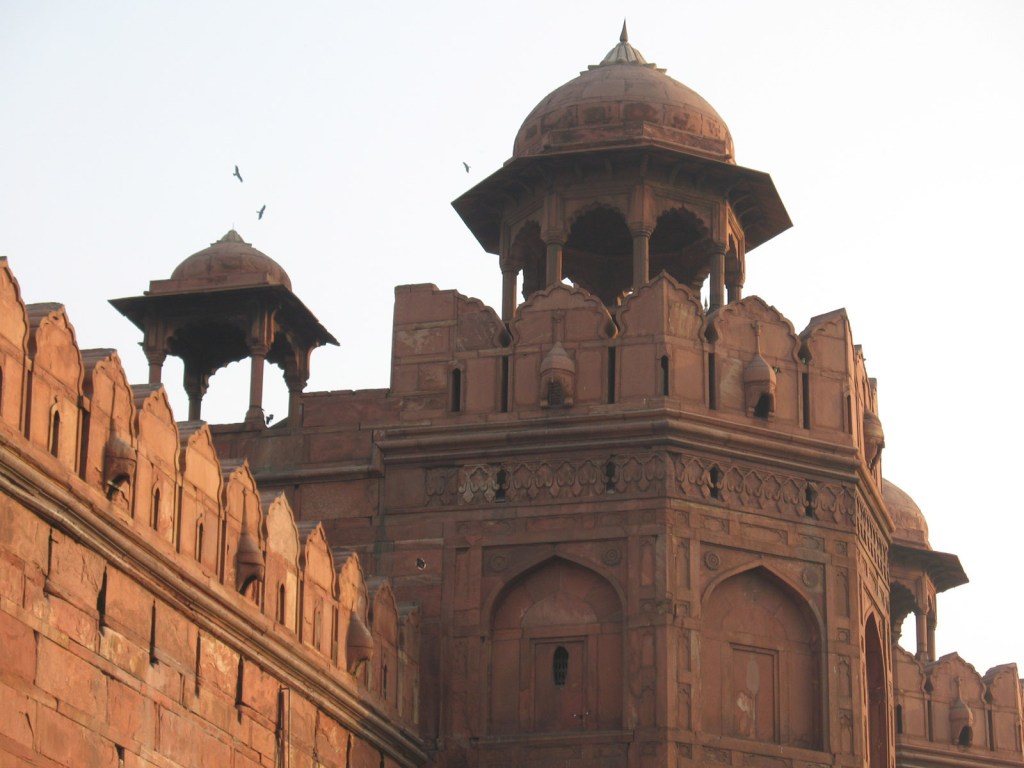 The Mughal architectural style of the red walls of the Red Fort, similar in colour to Fatehpur Sikri near Agra. The fort dates back to 1639, when Shah Jahan decided to relocate the capital from Agra.