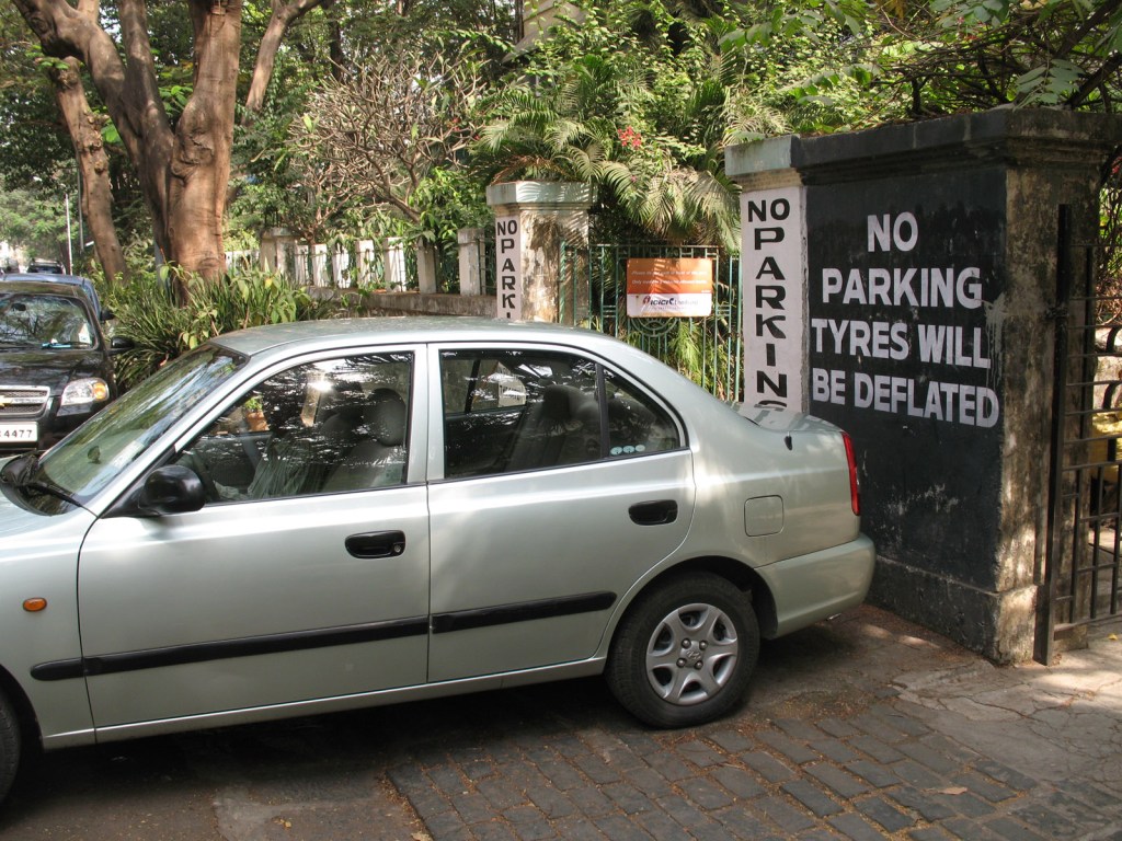 Colaba is fairly dense and with the high proliferation of cars, parking is a problem. Although drivers appear to laugh in the face of such threats as these.