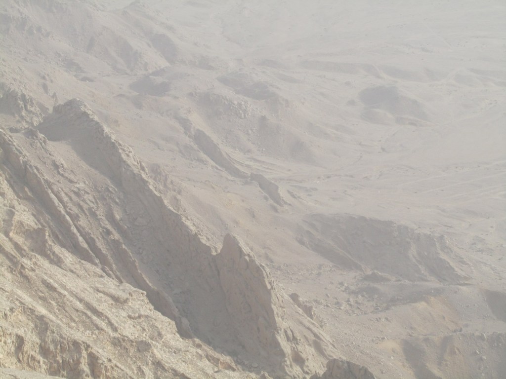 A little out of town is Jebel Hafeet, the tallest mountain in the area which stands almost on its own in the desert plain, reaching a height of 1,249 metres. It is surrounded by jagged outcrops such as these, typical of the Hajar Mountains straddling the UAE/Oman border.
