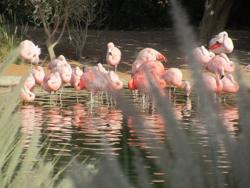Pink flamingos are one of the first exhibits seen when entering the zoo.