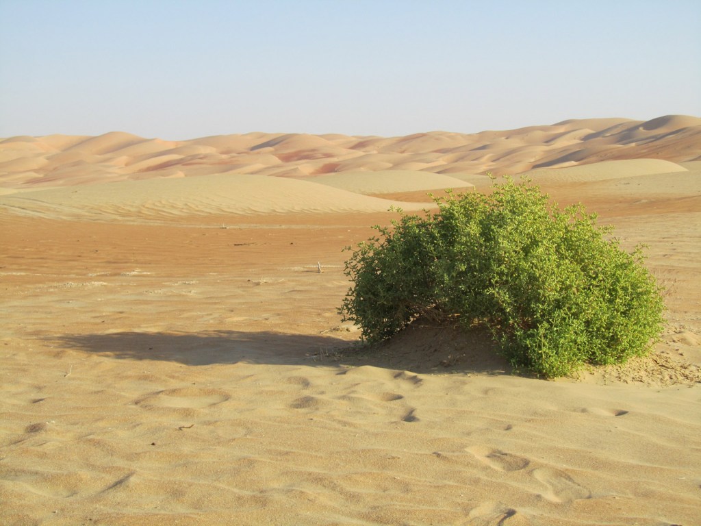 Hardy bushes still bloom out here in the Empty Quarter, even when they don’t look as spritely as this one they may still hold water in the roots.