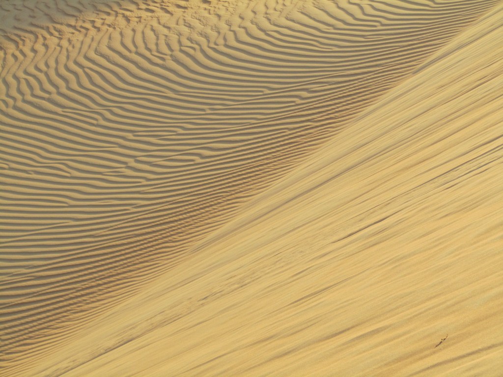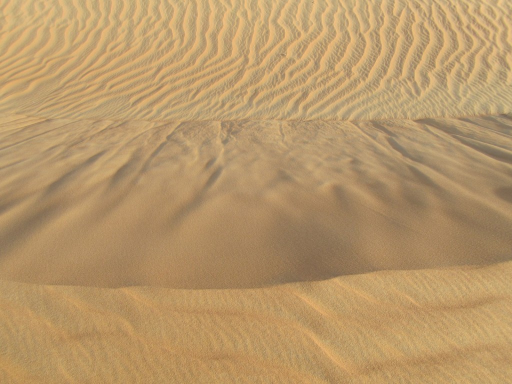 Varying patterns in the sand. Like the Sahara Desert, the sand would run and flow like water when disturbed.