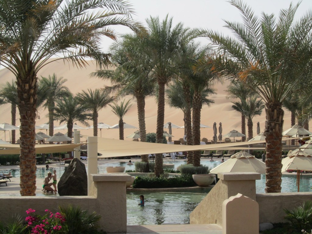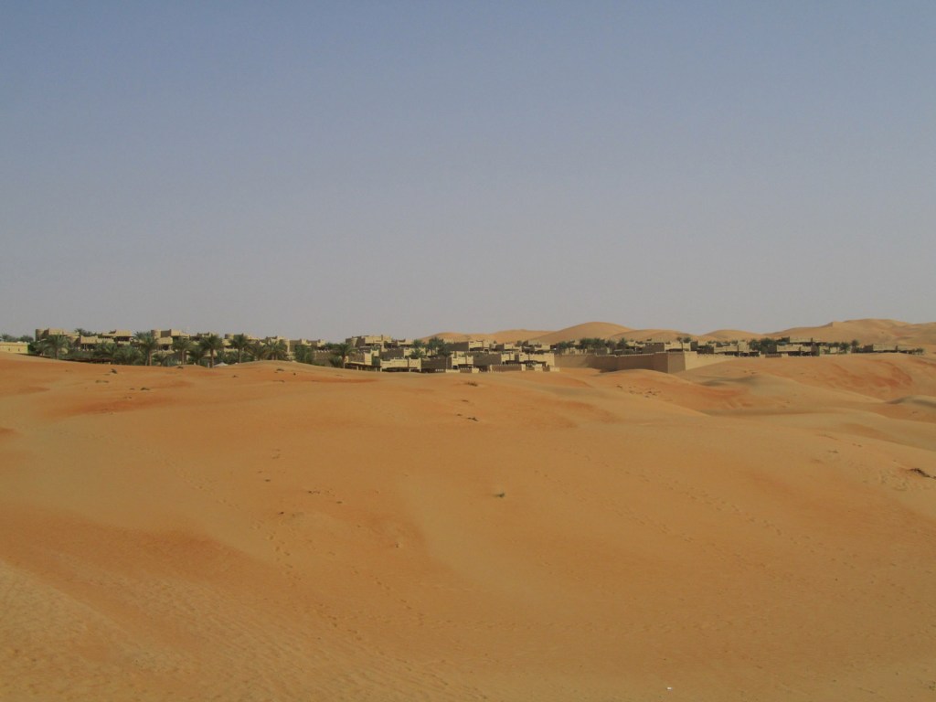 While Liwa itself is a huge crescent of settlements along the rim of the sand sea, there are some truly oasis-style pockets here and there, such as this hotel nestled in amongst the dunes.